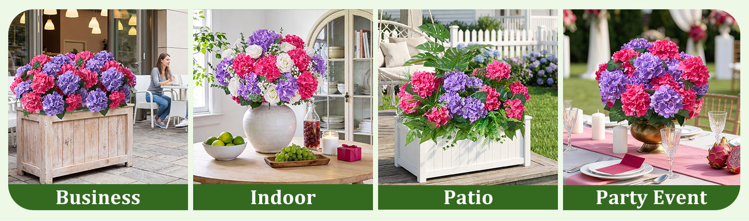 - Indoor/Outdoor Decor: These artificial flowers are perfect for weddings, home, bridal shower, office, shop, party, festival, dining rooms, coffee table, garden, Indoor and outdoor decor.